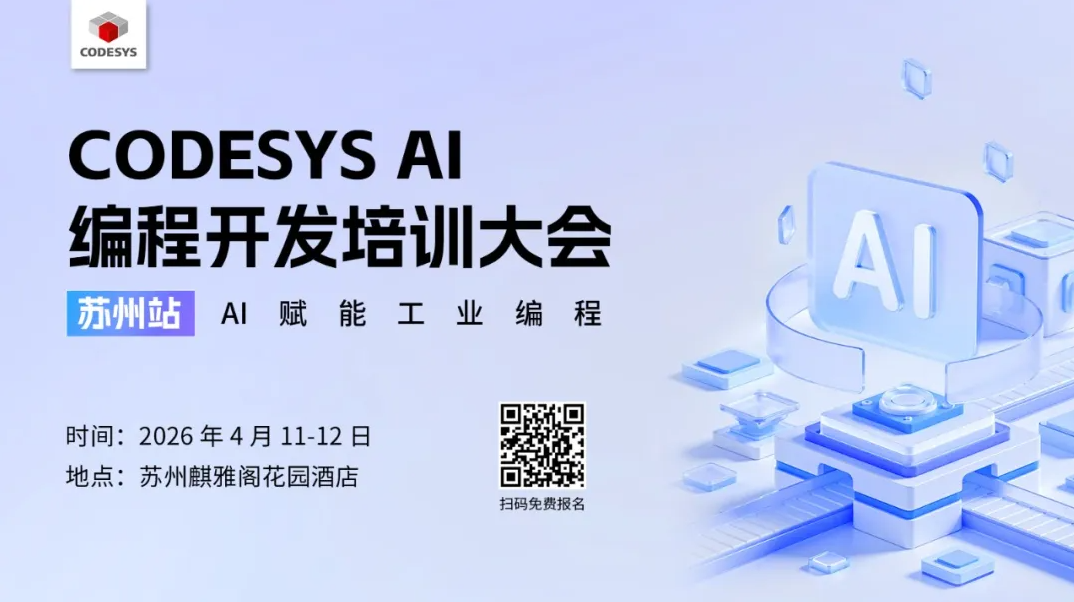 当工业编程遇上 AI,效率革命全面开启!2026 年 4 月 11-12 日,CODESYS® AI 编程开发培训大会(苏州站) 由 CODESYS 重磅打造,以AI 赋能工业编程为核心,两天沉浸式实战教学,从 AI 辅助工程到 AI + 传统编程融合落地,手把手教你掌握 CODESYS 原生 AI 编程工具链,重构工业自动化开发工作流,开启工业智能编程新征程!