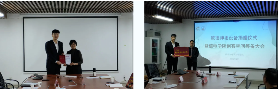 为深化产教融合协同育人,助力高校培养高素质工程技术与创新型人才,4月8日,CODESYS® 软件集团(中国)设备捐赠仪式,暨山东建筑大学信息与电气工程学院创客空间筹备大会圆满落幕。CODESYS 软件集团(中国)研究院院长王伟、技术经理孙继卫出席活动,山东建筑大学信息与电气工程学院党委书记李瑞学主持会议,学院党政领导班子、各教研室主任、辅导员及相关师生代表参会,共启校企协同发展新篇章。