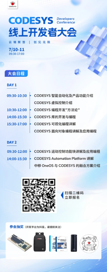 立即行动起来,加入 CODESYS 线上开发者大会,一起探索智能自动化的无限可能,为你的职业发展与技术提升注入新动力!让我们携手共进,在智能自动化的时代浪潮中勇立潮头,创造更加辉煌的未来!